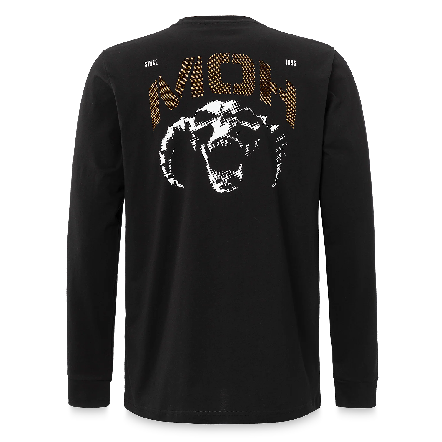 This black and yellow longsleeve features the iconic MOH logo on the chest, text logo on the sleeve, and a bold skull with MOH since 1995 on the back.